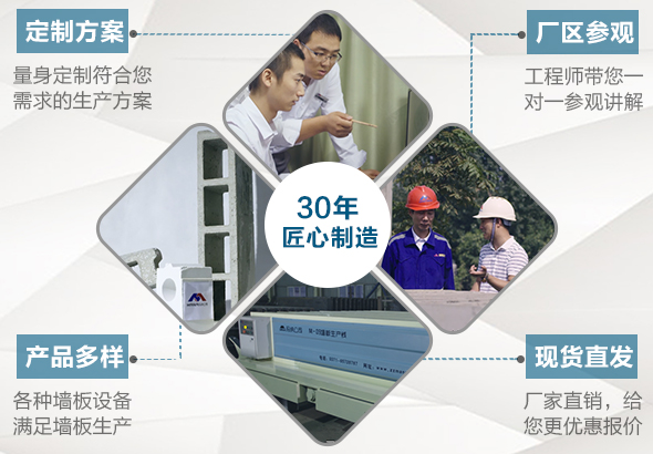 多年來瑪納公司憑借不斷增強的創新能力與行業認知,一直引領新型板材裝備行業發展,一直以來我們始終堅持團結協作,合作共贏的原則,贏取了廣大客戶的信賴與合作,鄭州瑪納公司建有最完善的“工業化房屋制造系統”裝備研發及產業化基地,擁有兩個占地100畝的裝備制造基地,具備年制造板材裝備1000套、模板制造2000噸的生產能力,瑪納公司可以根據客戶的工藝流程進行生產工廠規劃,生產線設計,所有的設備在標準設備的基礎上可以按客戶需求進行定制,設計專用設備。