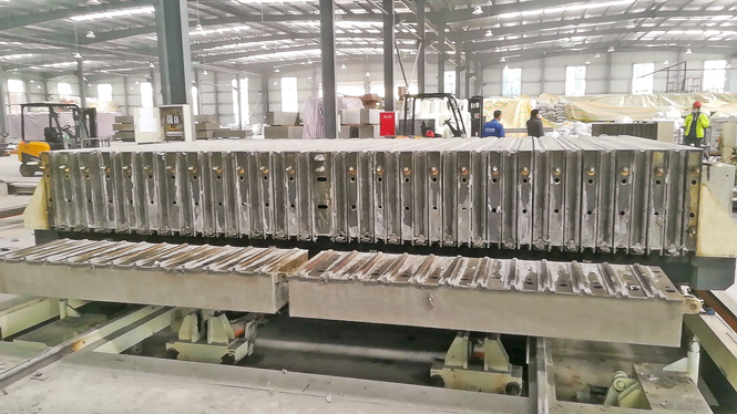 3) 液壓系統開/合模,精度定位,成型圍墻板構件幾何精度高。